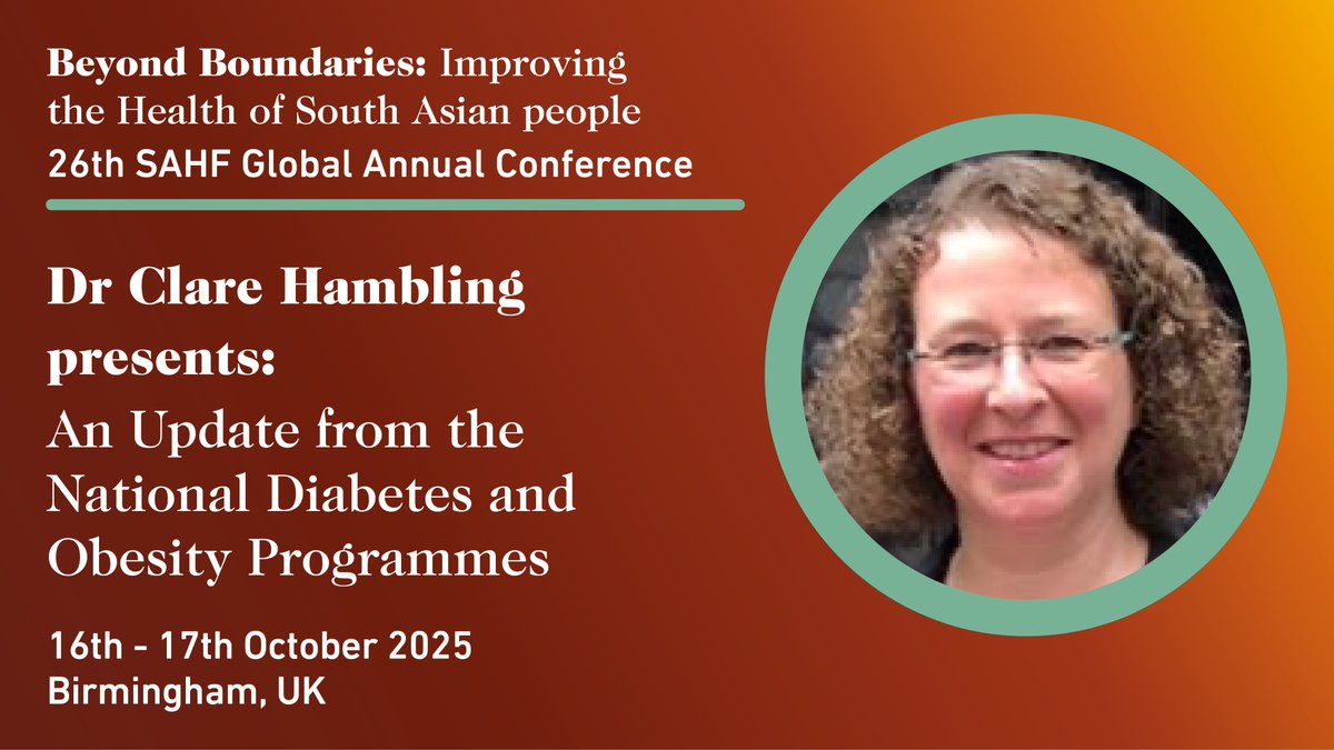Don’t miss Dr Clare Hambling’s talk on ‘National #Diabetes and #Obesity programmes’ at #SAHF2025. A must attend for HCPs! Register free now using this link: https://shorturl.at/YOaca @docwas @kamleshkhunti @AliRacaniere @AliaGilani @ClaireMeek5 @AmeliaCookDSN @ClareHambling